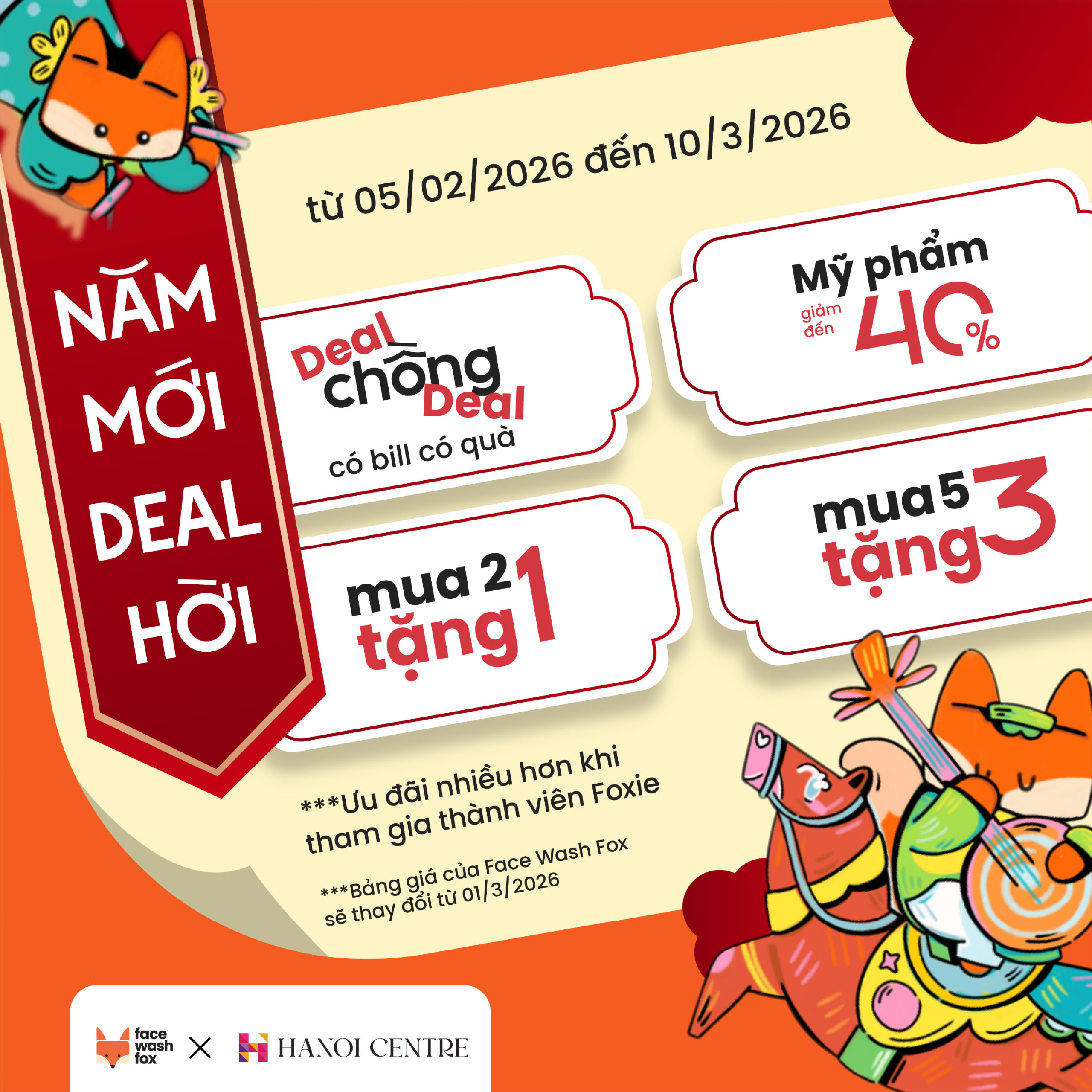 Từ 05/02 – 10/03/2026, đến Face Wash Fox là hưởng trọn 3 CHƯƠNG TRÌNH ƯU ĐÃI CHỒNG DEAL 👇👇👇