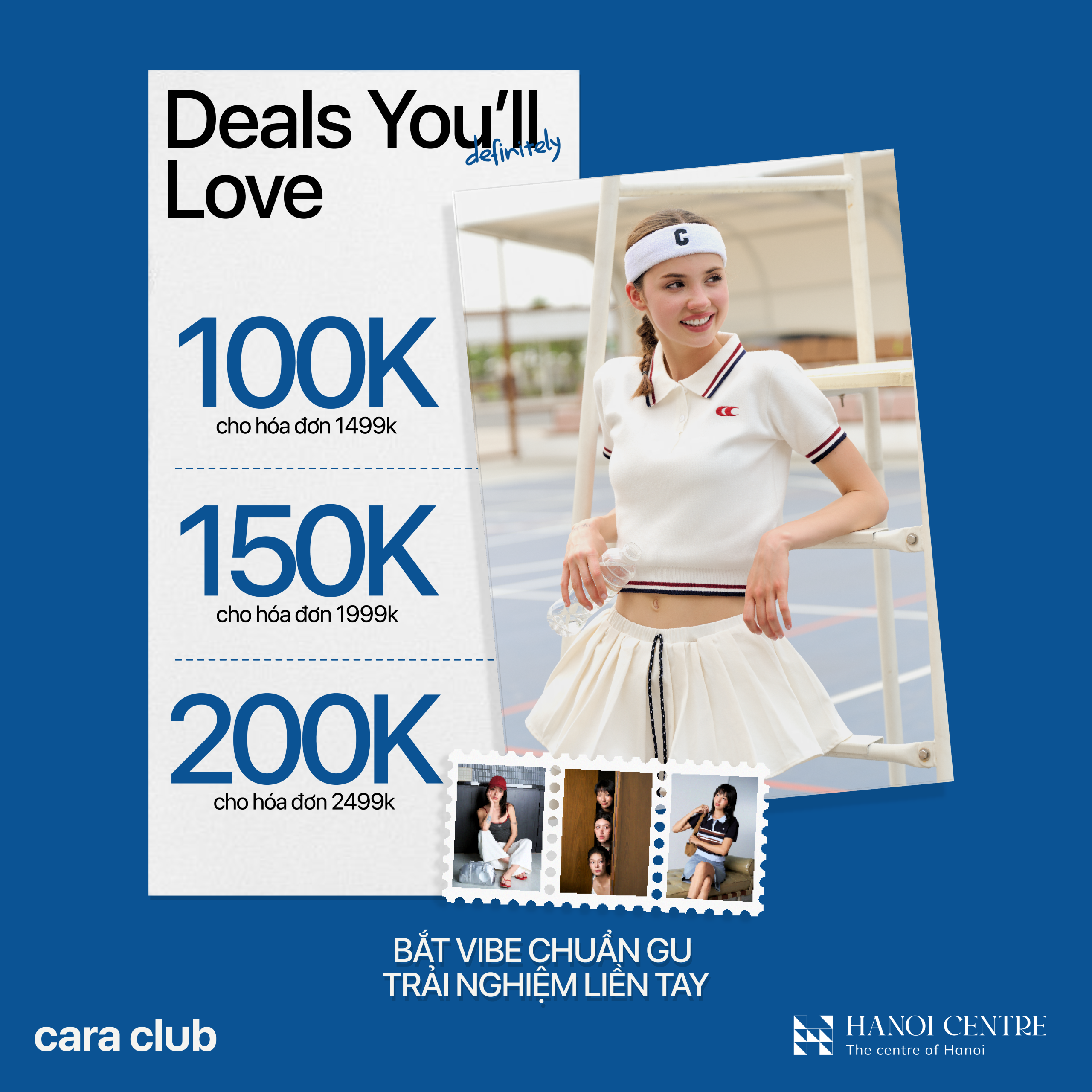 📍 Áp dụng tại CARA CLUB – Tầng B2, Hà Nội Centre