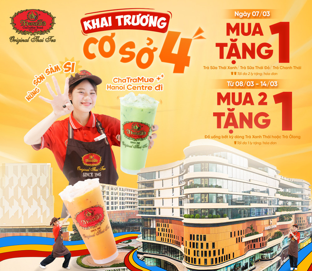Tin vui cho các tín đồ Trà Thái: ChaTraMue Hà Nội chính thức có mặt tại TTTM Hanoi Centre – mang đến không gian thưởng trà chuẩn vị Thái giữa lòng Hà Nội.