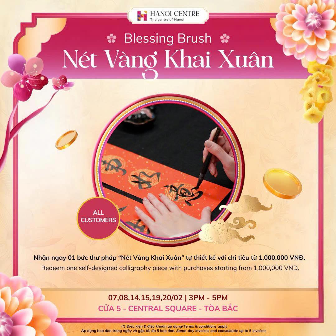 - Khách hàng không phải thành viên Rewards+ có chi tiêu từ 1.000.000 VNĐ sẽ nhận ngay 01 suất tham gia workshop bức thư pháp “Nét Vàng Khai Xuân” – tự thiết kế.