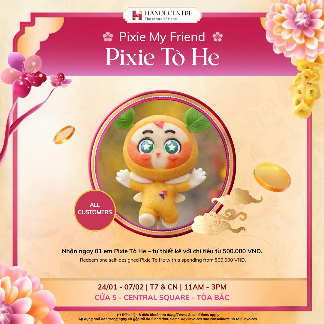 - Khách hàng không phải thành viên Rewards+ có chi tiêu từ 500.000 VNĐ sẽ nhận ngay 01 Pixie Tò He – phiên bản tự thiết kế.